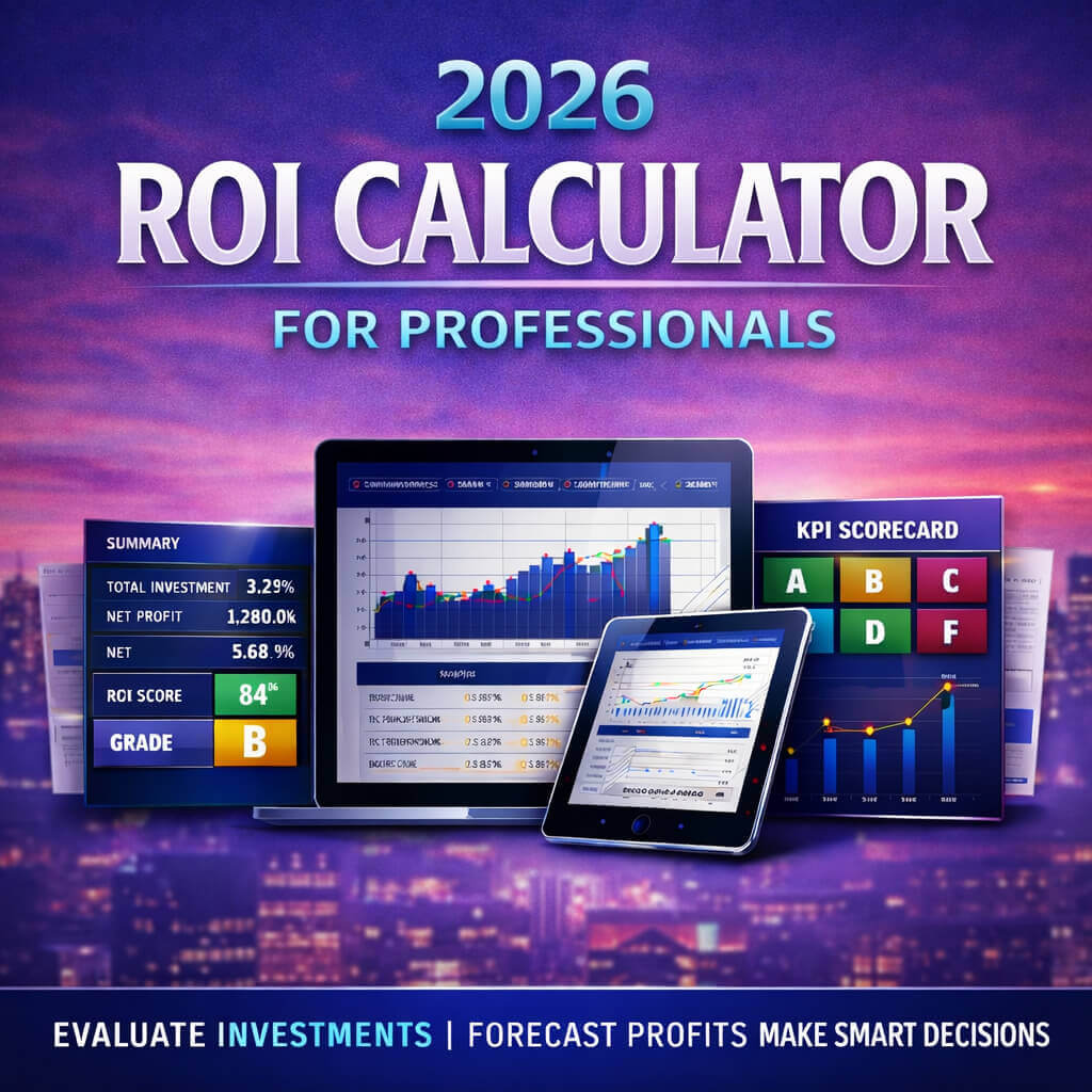 Whether you are a consultant evaluating client projects, a small business owner planning a product launch, or a startup founder seeking funding, the 2026 ROI Calculator for Professionals gives you confidence to make smart investment decisions. It saves time, reduces costly errors, and provides professional-grade financial analysis that can be shared with investors, partners, or your management team.