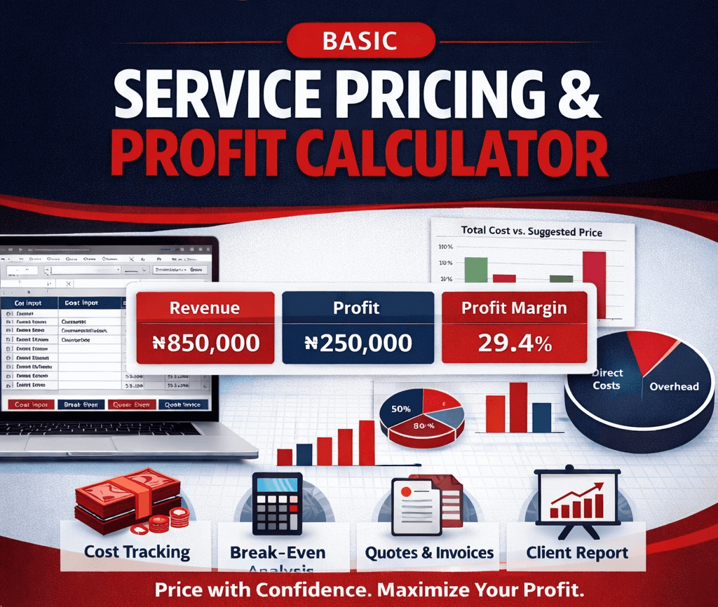 The Service Pricing & Profit Calculator is a plug-and-play Excel tool designed for consultants, freelancers, and service providers who want accurate pricing and healthy profit margins.