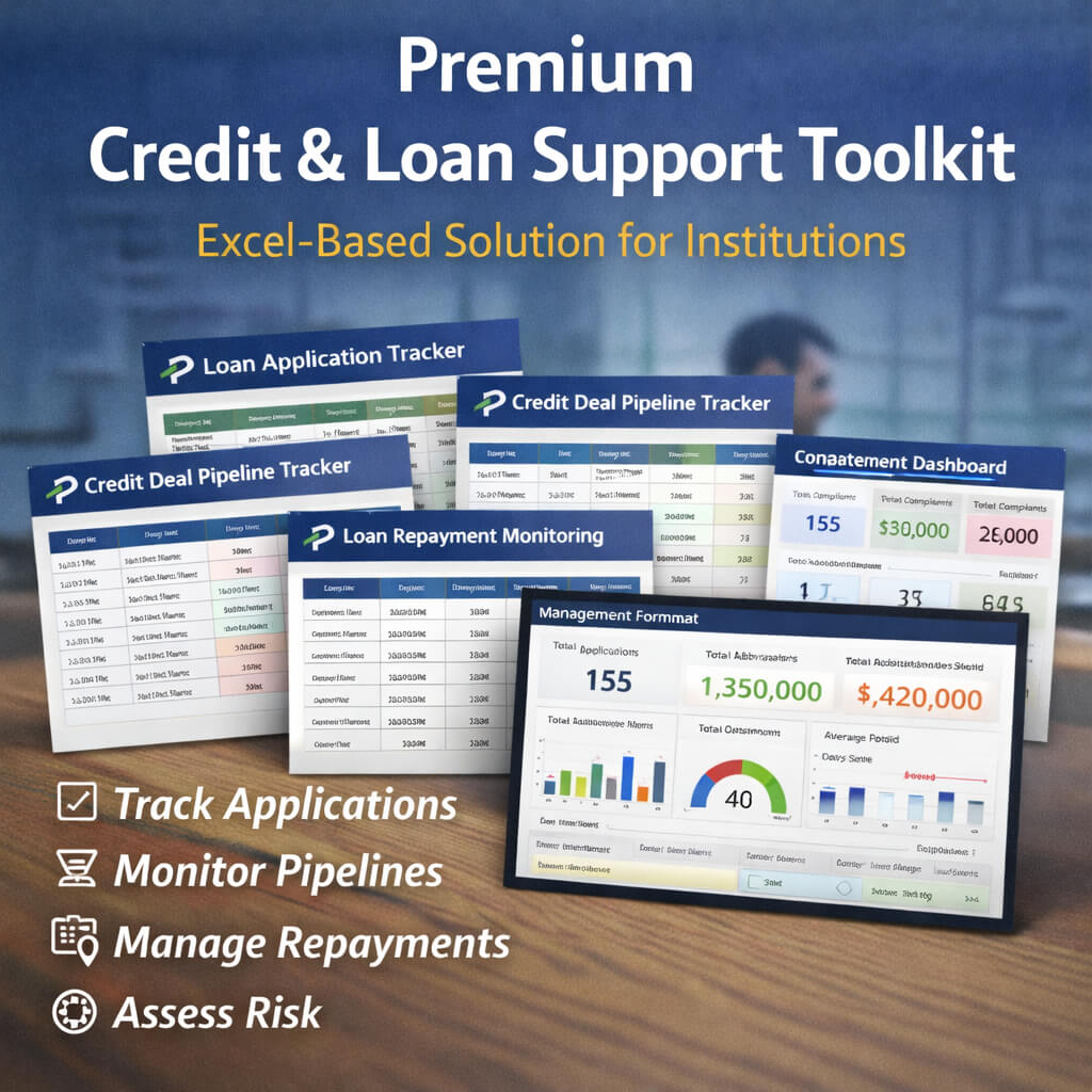 The Credit & Loan Support Toolkit (Premium) is a complete Excel-based solution for banks, microfinance institutions, and financial service teams to efficiently manage credit operations without touching core banking systems. This premium toolkit allows credit officers, loan processing teams, and managers to track loan applications, monitor deal pipelines, manage repayments, assess credit risk, and oversee officer performance — all in one workbook.