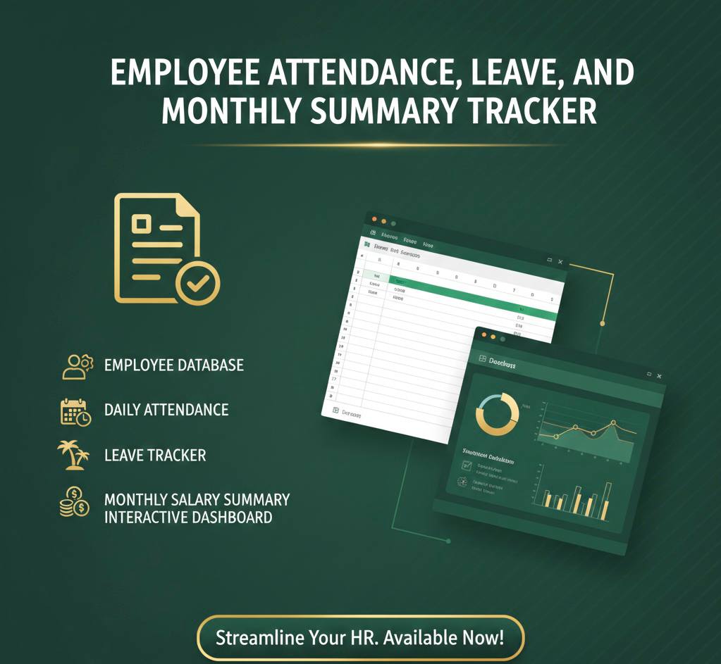 The Employee Attendance, Leave, and Monthly Summary Tracker is a comprehensive Excel tool designed to make HR and payroll management simple and efficient. Ideal for small business owners, managers, and team leads, this tool gives you a complete view of your workforce in one place.