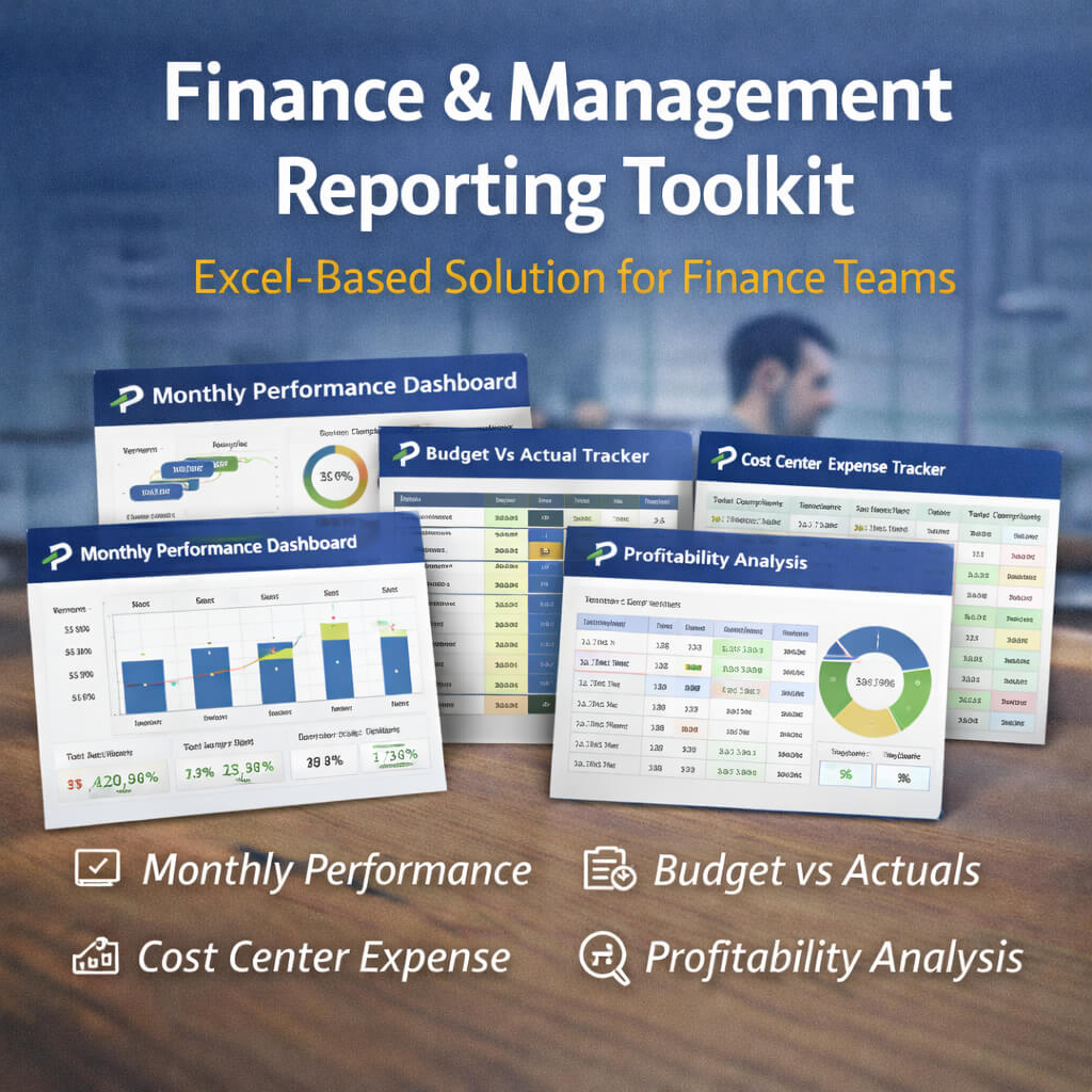 With built-in formulas, dropdown menus, conditional formatting, and a management dashboard, it automatically calculates variances, growth percentages, net profits, and profit margins. The toolkit is ideal for generating audit-ready reports, department-level summaries, and executive dashboards directly from Excel without relying on complex ERP systems.