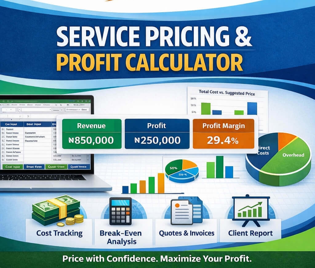 The Service Pricing & Profit Calculator is a powerful, plug-and-play Excel system built for consultants, freelancers, and service businesses who want to know exactly what to charge and how much they’ll earn.