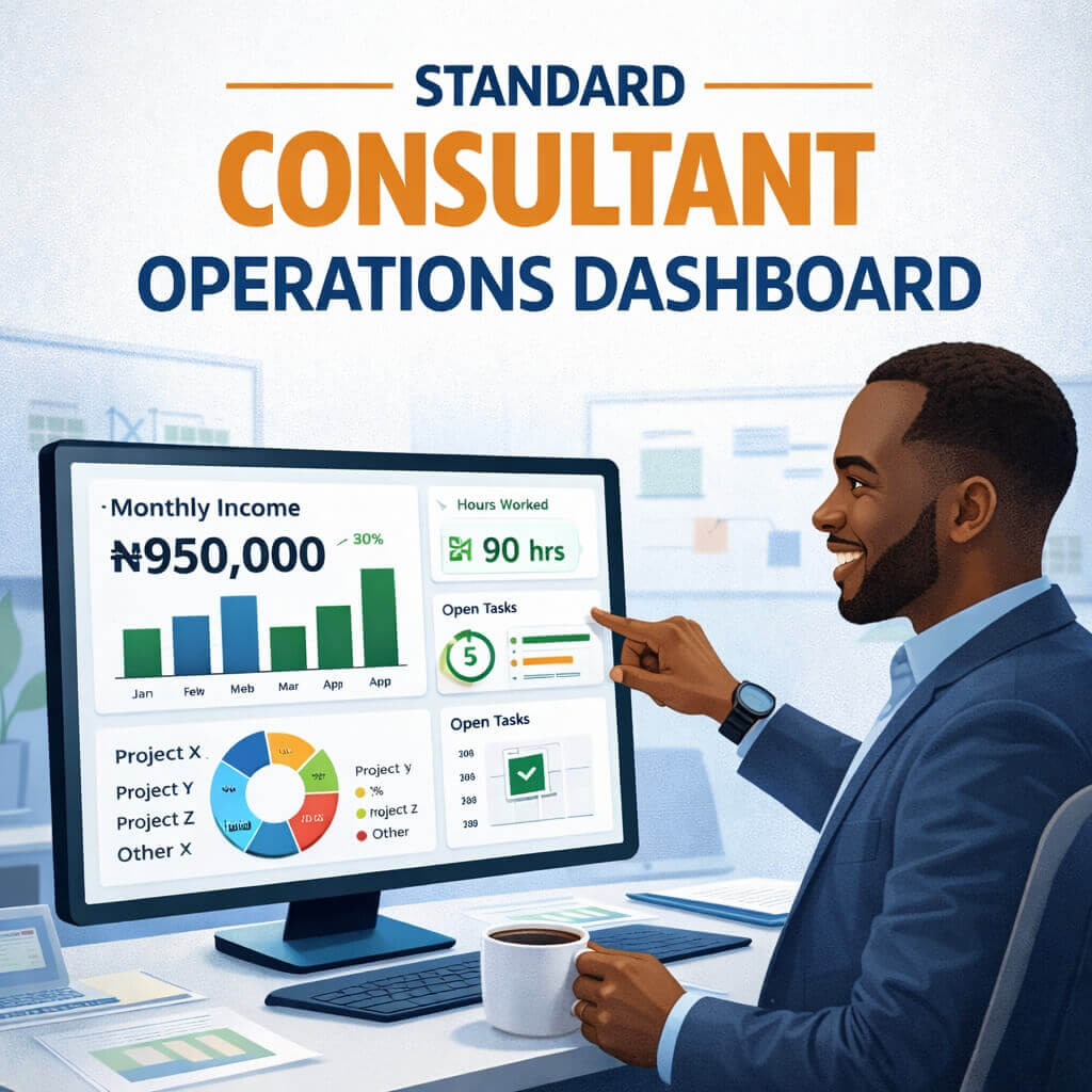 Consultant Operations Dashboard is a complete Excel toolkit designed for consultants and service providers to manage clients, projects, revenue, expenses, and pipelines efficiently. With structured sheets, automated calculations, and dynamic summaries, it helps you stay organized, track performance, reduce errors, and execute your ideas with clarity. Perfect for professionals who want a clear overview of their operations without complex software.